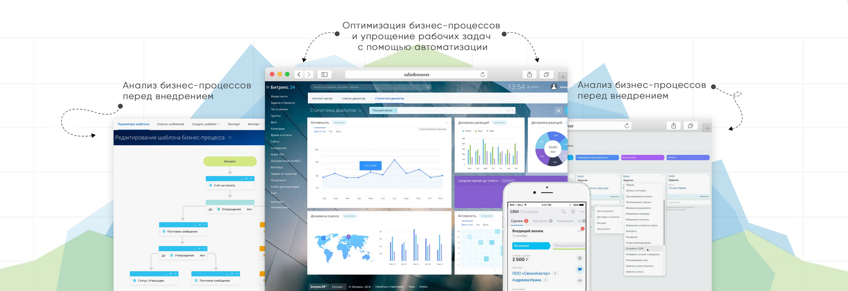 Поможем Вашей компании повысить эффективность работы, оптимизируем рутинные процессы с использованием инструментов Битрикс24, 1С и BI-аналитики, чтобы предоставить сотрудникам возможность сосредоточиться на более значимых задачах.